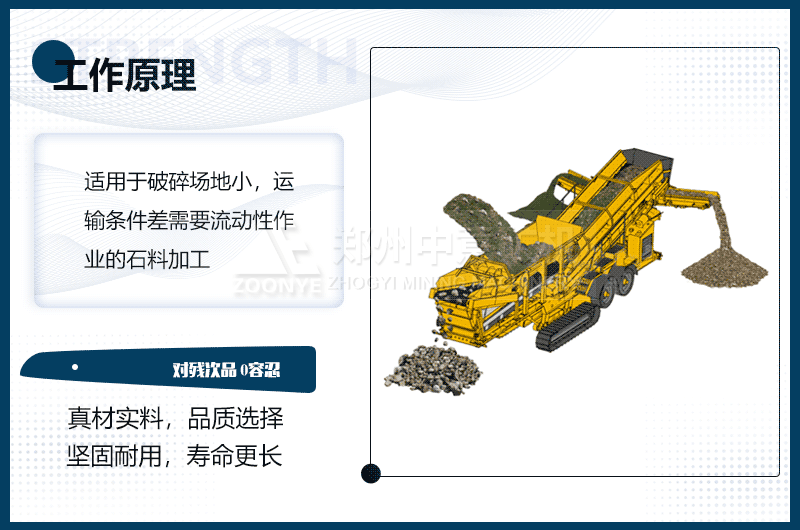 輪胎式立破移動篩分站運作當(dāng)中,各項給料、破碎、篩分設(shè)備協(xié)調(diào)工作,原料先進入破碎設(shè)備進行破碎加工,在此期間骨料被破碎過程當(dāng)中被修整為規(guī)則、通透度很強的顆粒狀再生骨料,制砂之后,進入專用篩分機設(shè)備,后合格的骨料通過出料口排出,未達到客戶要求的骨料再次進入破碎機,從而形成一條閉合回路的效應(yīng)。整個生產(chǎn)過程當(dāng)中,運用自驅(qū)行走的移動車身設(shè)計,大大提高了設(shè)備的安全性、有效性以及現(xiàn)場的可隨機應(yīng)變性能。