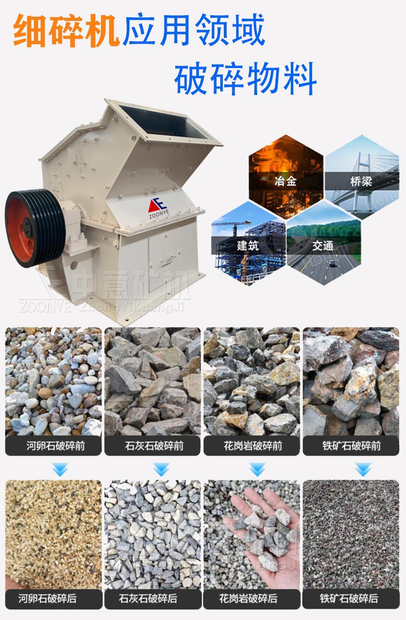 鄭州中意在原細(xì)碎機(jī)的基礎(chǔ)上推出的升級(jí)版,生產(chǎn)效率更高,破碎比大,細(xì)碎效果好,用途更廣泛,鄭州中意生產(chǎn)的重型高效細(xì)碎機(jī),是實(shí)用可靠的細(xì)碎制砂機(jī)械,特別適用于對(duì)耐磨、耐火材料,石灰石、水泥熟料、石英砂、爐渣粉、各種礦石、混凝土骨料、瀝青骨料等多種硬脆物料的細(xì)碎與中碎,是一種高效,節(jié)能的碎石制砂設(shè)備,比傳統(tǒng)細(xì)碎機(jī)節(jié)能50%。
