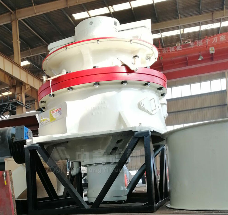 CH底部單缸液壓圓錐破碎機采用液壓系統代替彈簧系統,用底部液壓缸控制動錐起落達到調整排礦口的目的,使原來彈簧機型復雜的調整環、支承圈部及彈簧部得以省略,大大簡化了設備結構,另外,底部液壓圓錐破碎機的動錐主軸偏心角小,使得液壓機破碎錐相對較陡,破碎腔長,從而提高了破碎的均勻性。破碎機的操作維護也較簡便,只需操作液壓系統就可以完成程序。