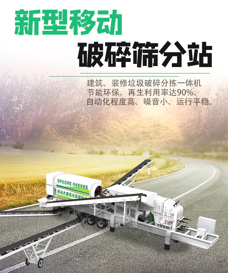 配置輕物質(zhì)處理兼篩分功能的新型裝修垃圾破碎篩分站,輕物質(zhì)分離徹底、工作效率高。破碎篩分一體機,占地面積少,整機性價比和可靠性高。