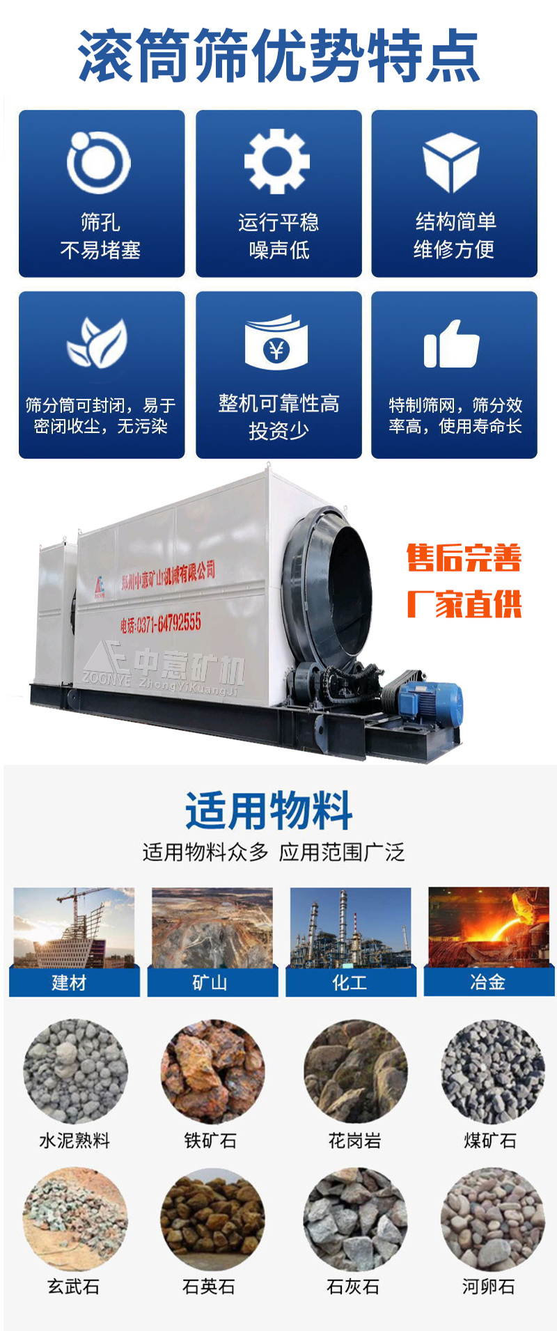 滾筒篩是由若干個(gè)圓環(huán)狀網(wǎng)組成,其總篩分面積遠(yuǎn)遠(yuǎn)大于其它篩型的篩分面積,再加上篩分效率高,設(shè)備運(yùn)行時(shí)間短,故而使用壽命較長(zhǎng),易損件少、維護(hù)量小。