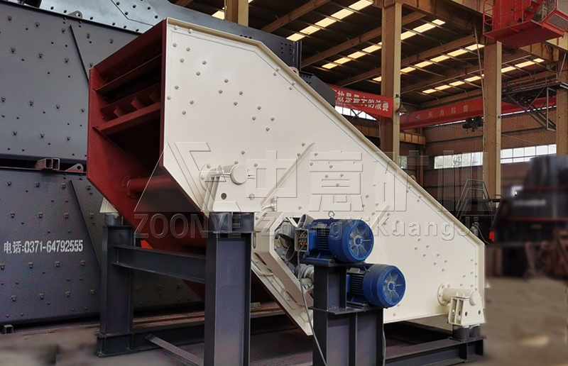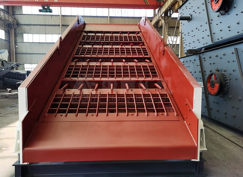 2、棒條式振動篩機體:采用板材、型材焊接而成,其作用是將來料通過振動輸送到破碎機。