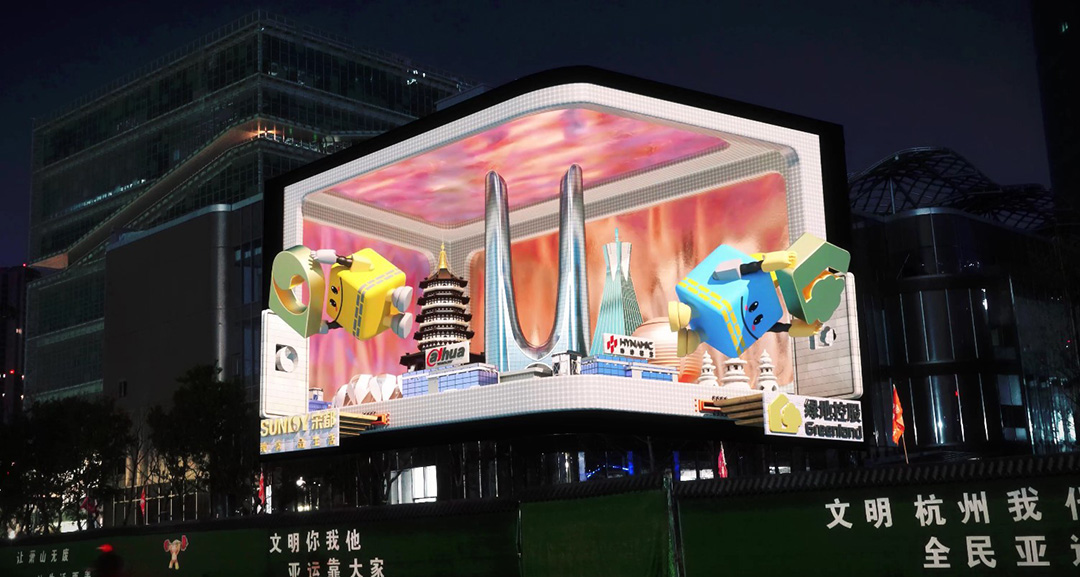 此外,諾瓦星云子品牌嗨動視覺,為杭州之門LED超級巨屏,定制制作的裸眼3D素材,成為亞運杭州街頭最靚的風(fēng)景之一。