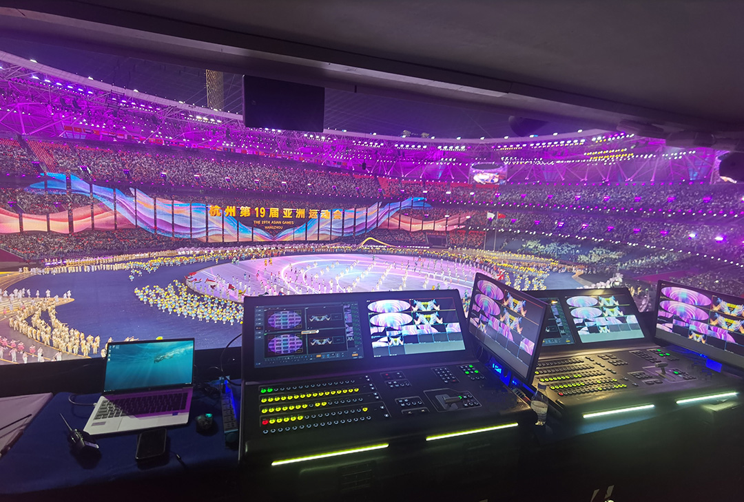 從視頻控臺、拼控處理到顯示控制,諾瓦星云端到端極簡全鏈路賦能,為開幕式10000㎡超3億像素24K地面巨屏、超大IMAX立體透視網(wǎng)幕屏、數(shù)字人點火炬背景屏,帶來超清、流暢、穩(wěn)定、出色的畫面表達(dá)。助力全球首創(chuàng)的數(shù)字人點火與電子煙花,在亞運現(xiàn)場綻放,助力全球重大賽事開幕式歷史上首次應(yīng)用3D雙亞威技術(shù)的完美實現(xiàn)。