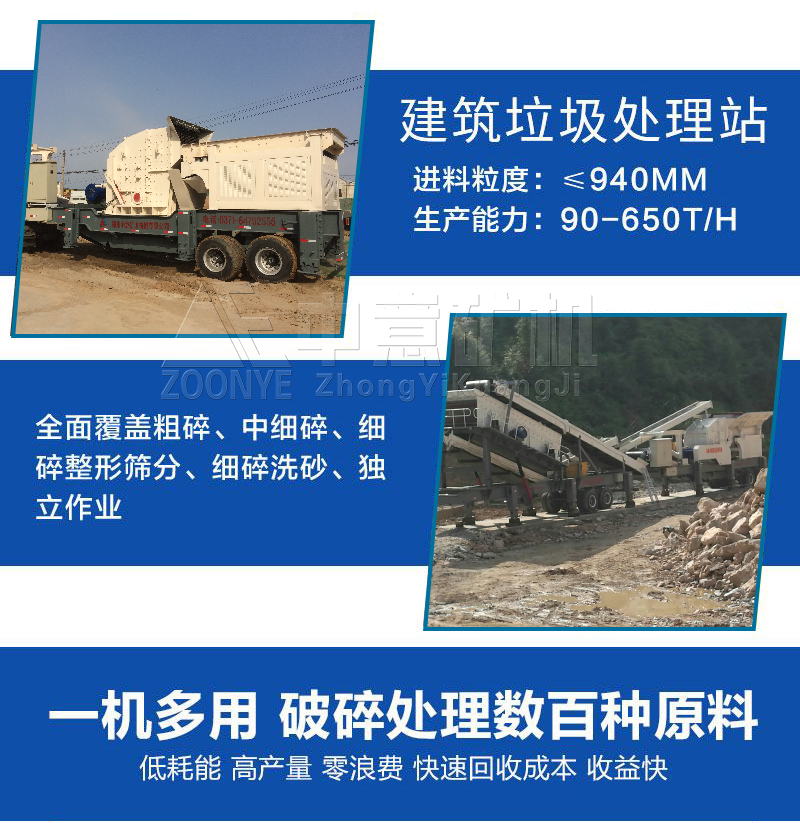 綜上所述,建筑垃圾通過移動破碎站的處理能夠變成可再生利用的有效資源,是值得推廣和借鑒的一種處理方式,鄭州中意長期生產(chǎn)建筑垃圾處理設(shè)備