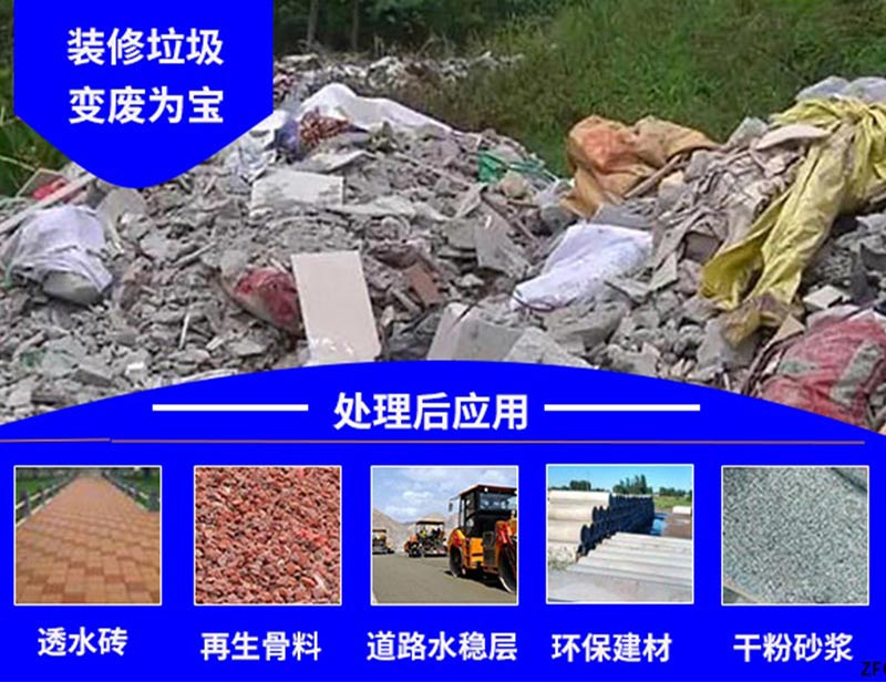 城市繁華背后是越來越多的裝修垃圾,目前已經成為城市中主要污染之源,包括裝修開始到裝修完畢所產生的所有廢料,有用剩下的各種板材、切割剩下的磚塊、混泥土渣、抹墻灰砂礫等,硬度、大小紛紛不一,破碎之后用途甚廣,可作為再生建材材料、修建房屋基石、制磚原料等。
