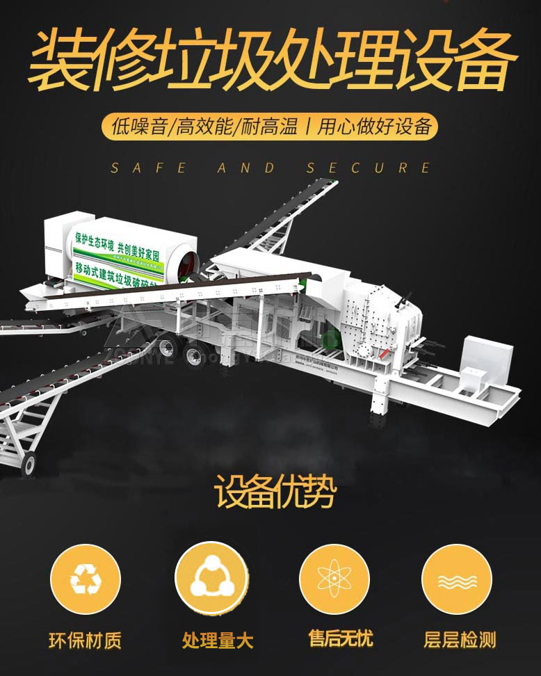 修垃圾處理過程中盡量降低揚塵和二次污染,避免對周邊環境造成不利影響,實現無害化環保生產。這套設備投產后,將大大緩解裝修垃圾污染的危害,讓有限的資源變成了無限的循環。